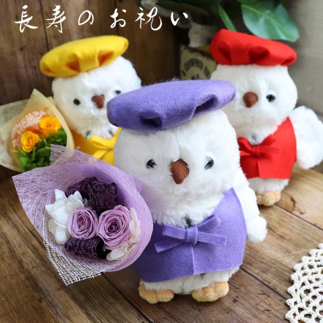喜寿 ちゃんちゃんこ 還暦 古希祝い 喜寿祝い 還暦祝い 米寿祝い 卒寿のお祝い 百寿祝い 花 米寿 お祝い 古希 紫 喜寿 プリザーブドフラワー 百寿 女性 プレゼント 祖母 米寿祝い 喜寿 祝い 60歳 70歳 77歳 80歳 88歳 傘寿 卒寿 ぬいぐるみ 花束「長寿祝いふくろう花束付」