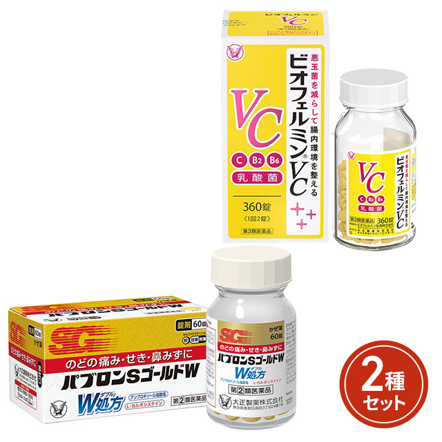 常備薬セット 指定第2類医薬品 パブロンSゴールドW錠60錠 ※セルフメディケーション税制対象商品 & 第3類医薬品 ビオフェルミンVC 360錠 大正製薬 悪玉菌を減らして腸内環境を整えるビオフェルミンVC