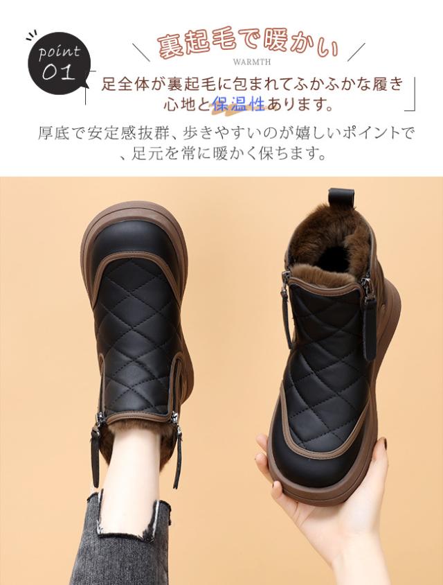 冬新作 スノーブーツ レディース 防寒ブーツ 裏起毛 防寒ハイカットシューズ 厚底 キルティングスノーブーツ ムートンブーツ 裏起毛 軽量 快適 秋 冬 雪靴