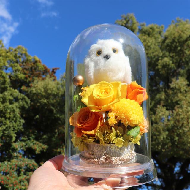 「幸運の鳥」と言われているふくろう。 縁起の良いとされるふくろうとお花の ドームです。