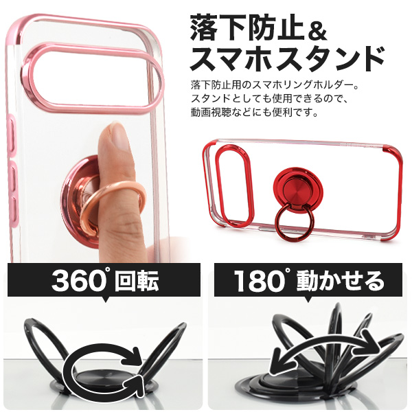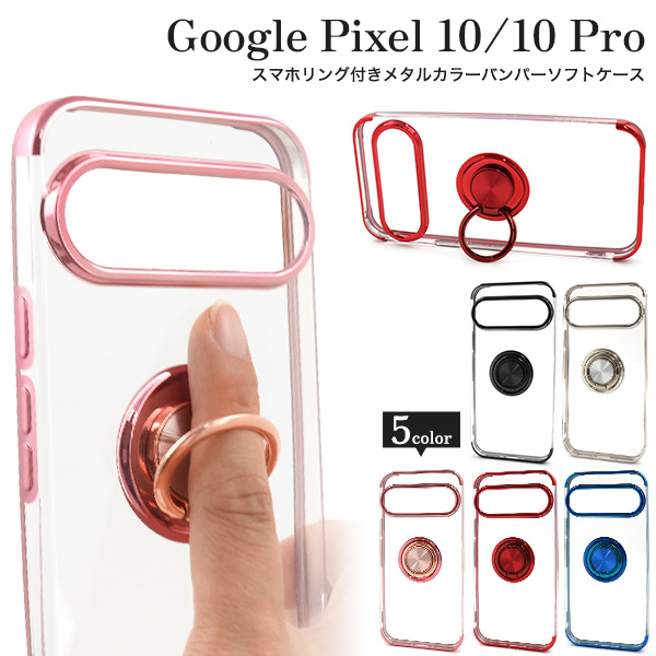 スマホケース Google Pixel10 Google Pixel10Pro用 スマホリング付き メタルカラー バンパー ソフトクリアケース 装着簡単 おしゃれ 上品 携帯ケース 可愛い お洒落 韓国風 背面保護 スマートフォンケース スマホカバー 韓国 韓国っぽ シンプル グーグルスマホ
