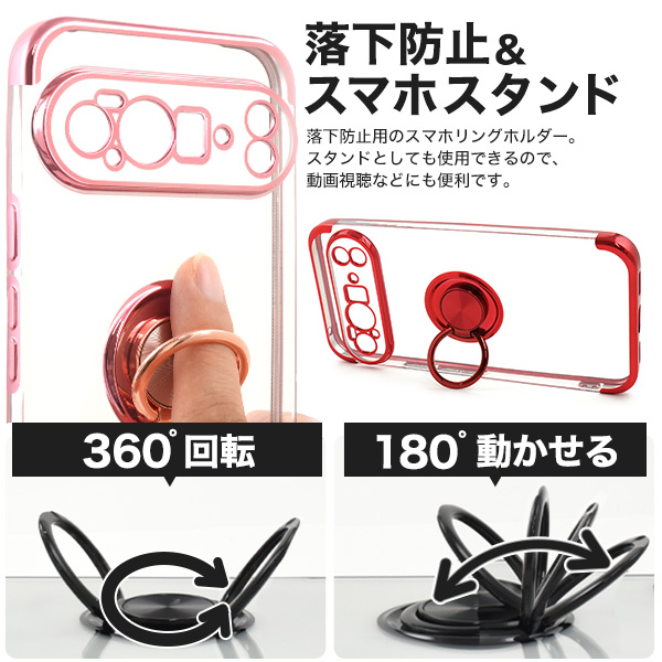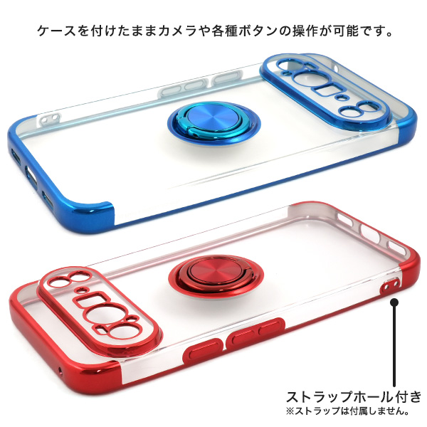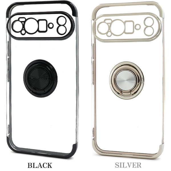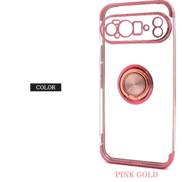 スマホケース Google Pixel10Pro XL用 スマホリング付き メタルカラー バンパー ソフトクリアケース 装着簡単 おしゃれ 上品 携帯ケース 可愛い お洒落 韓国風 背面保護 スマートフォンケース スマホカバー 韓国 韓国っぽ シンプル グーグルスマホ