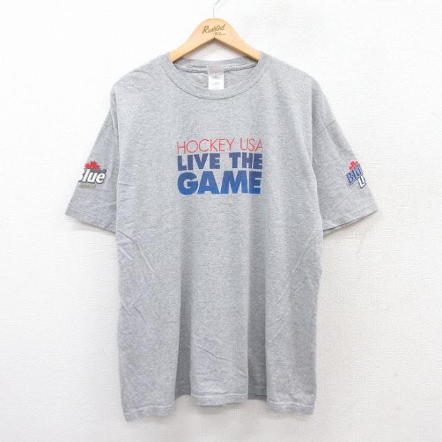 【商品名】 XL★古着 半袖 ビンテージ Tシャツ メンズ 00年代 00s ホッケー ラバットブルー ビール 大きいサイズ クルーネック グレー 霜降り