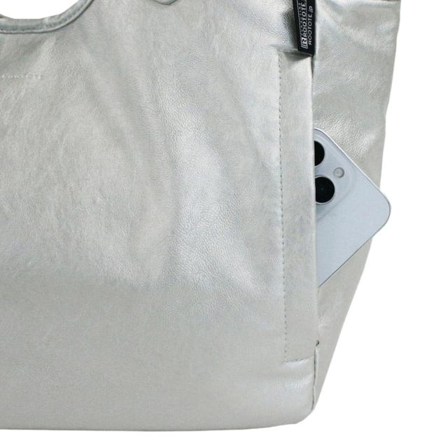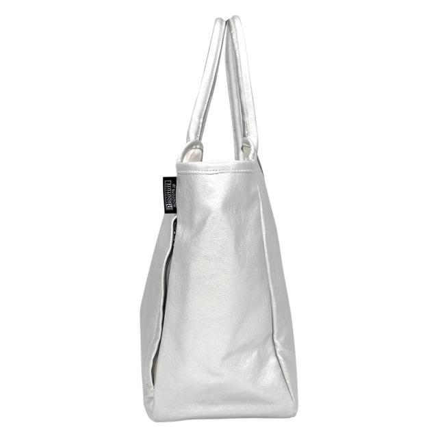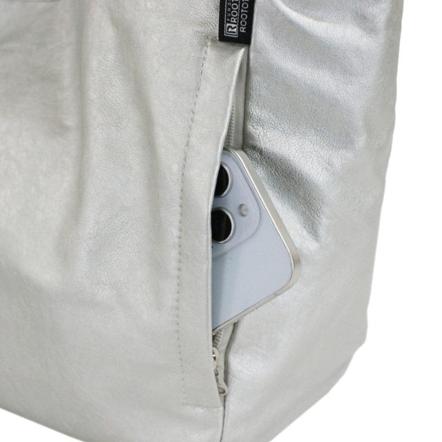 ONにもOFFにも!バランスの良いトートバッグに仕上げました。肩掛けしやすい「ハビチェル」。肩掛けしやすい長さはありつつ、手に持っても腕掛けしてもバランスの良い持ち手。マチ幅が張り過ぎていないため、おさまりよく身体にフィットしてくれます。やわらかく滑らかな合皮素材をセレクト。シボ加工で程よいマット感があり、本革のような風合い。正面サイドには、ファスナー付きのルーポケット。かばんの中で迷子になりがちなアイテムの収納に便利です。口元は、荷物に合わせて3段階の留め方ができるホック仕様。A4サイズの書類や雑誌が横に入ります。たくさんの荷物でも、底板入りで底面がたわまず、きれいな形をキープ!開口部が広く自立するので、モノの出し入れがスムーズに行えます。裏地にはコットンのかつらぎ生地を使用し、たまぶちの内ポケット。おとなの女性に向けた上質な雰囲気に仕上げています。ROOTOTEのロゴが小さく素押しされただけのシンプルな見た目。スーツスタイルにもカジュアルスタイルにも合う、万能なトートバッグです!