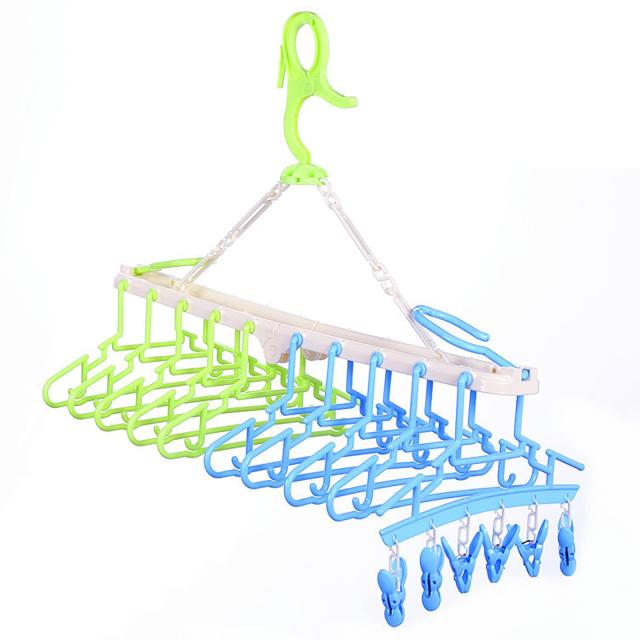 洗濯物ハンガー 10連 子供用ハンガー 洗濯 キッズ ハンガー ピンチハンガー 洗濯物干し 洗濯ハンガー 物干し竿 屋外 折りたたみ ブルー &