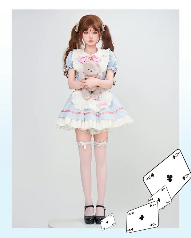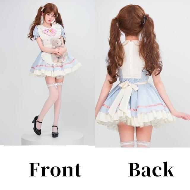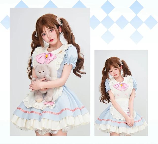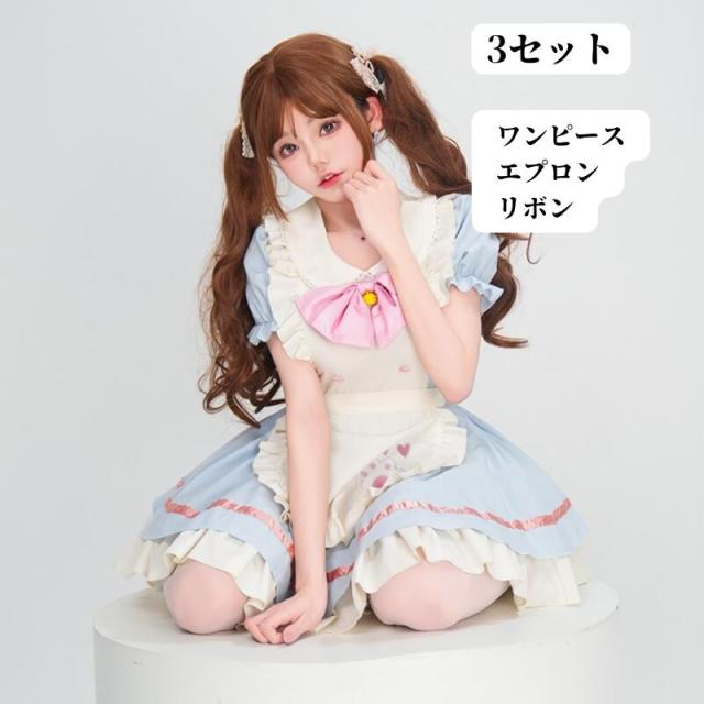 セット内容 3点:ワンピース+頭飾り+エプロン
