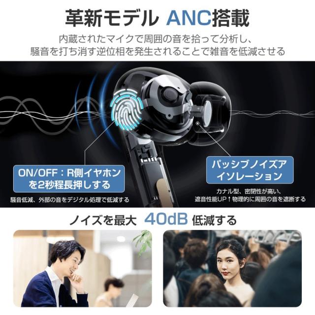 ワイヤレスイヤホン 高音質 重低音 防水 Bluetooth5.2 ANCノイズキャンセリング コンパクト スポーツ iPhone Android ブルートゥース 最新型 プレゼント