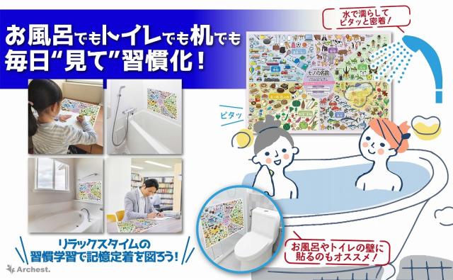 お風呂のリラックスタイムに楽しいポスターを見ることで学習が楽しくなります。学習モチベーションの向上も期待できます。