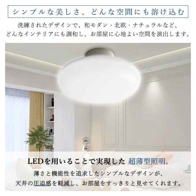 - 高発光率のLEDチップを採用し、従来の蛍光灯より約2倍明るく、電気代を半分以下に節約できます。10Wで4〜8畳のお部屋を明るく照らし、経済的にも安心。さらに、厚さわずか約5cmの超薄型デザインでスタイリッシュ。天井の圧迫感を軽減し、お部屋を広くすっきり見せます。
