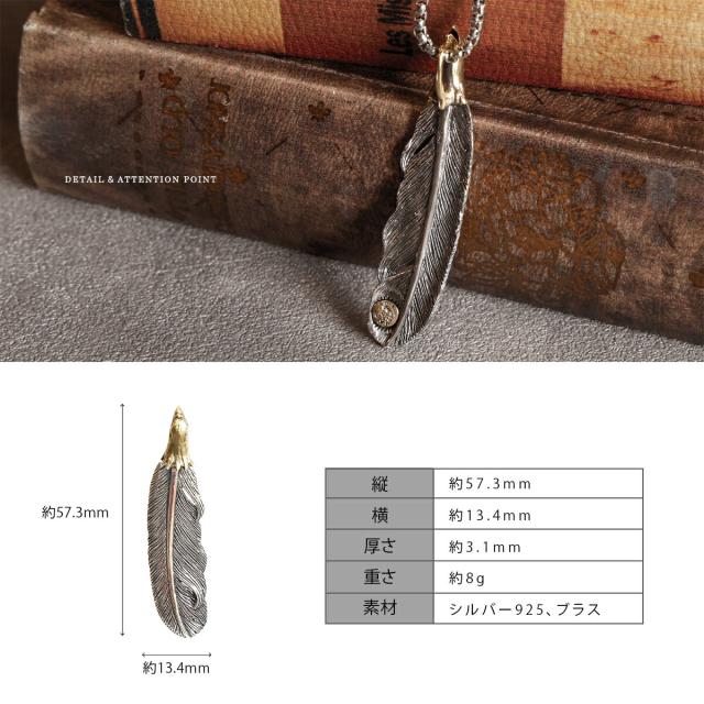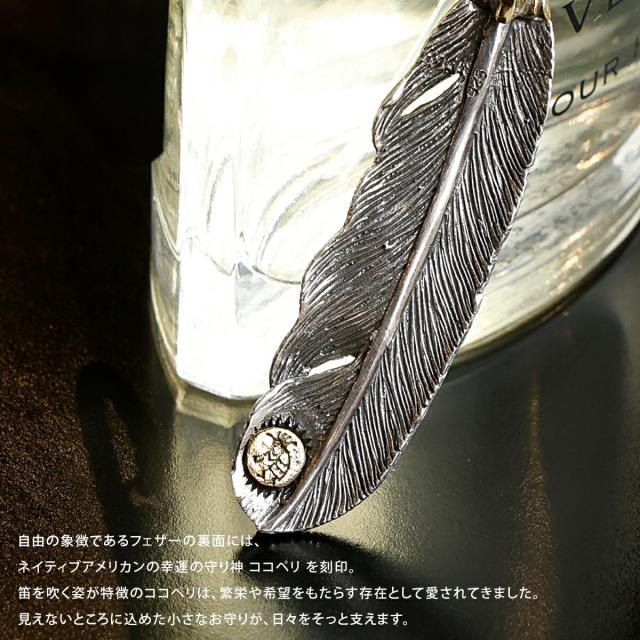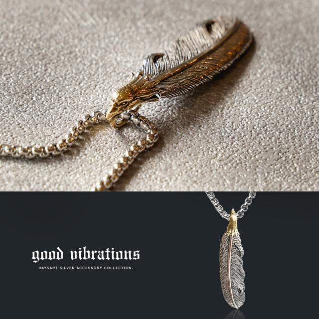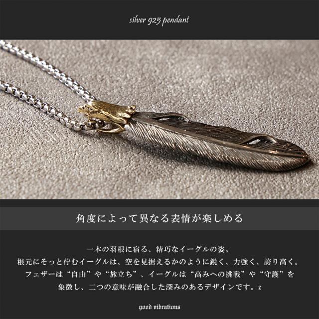 ネックレス シルバー925 ペンダント フェザー イーグル ペンダントトップ 羽根 ココペリ アクセサリー ネイティブ系 インディアンジュエリー風 メンズ レディース チェーン付き ブラス コンビ ブランド good vibrations