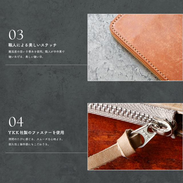 手に取った瞬間に伝わるしっとりとした質感と、使い込むほどに深まるエイジングが革好きの心を満たしてくれます。