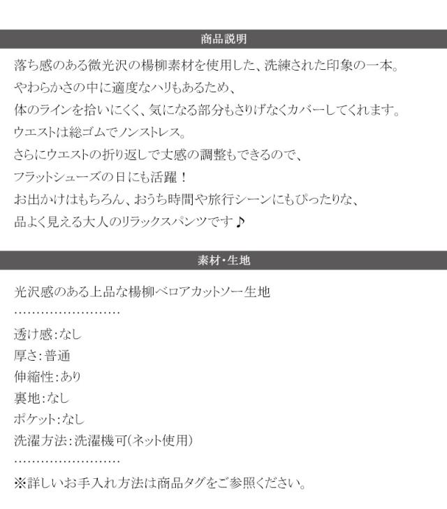 品よく見える大人のリラックスパンツです♪