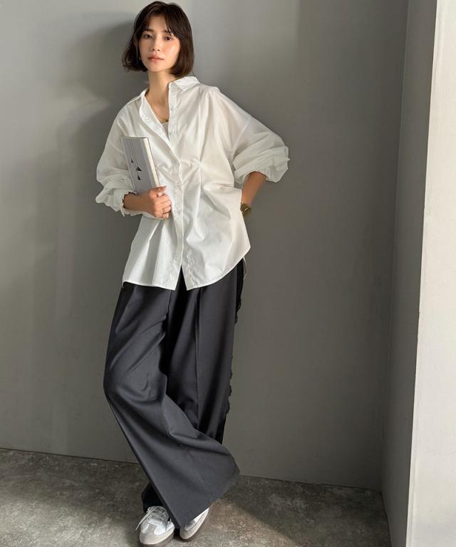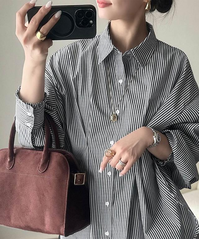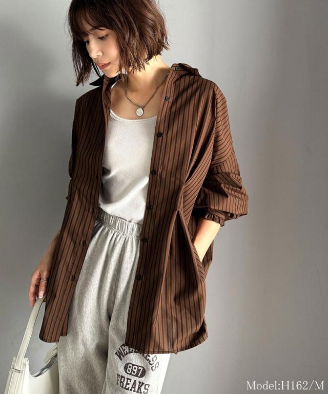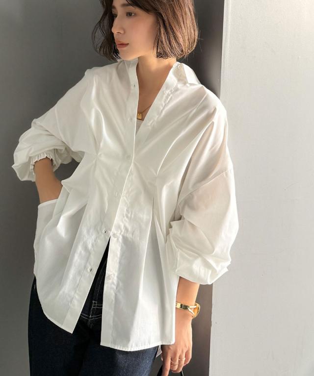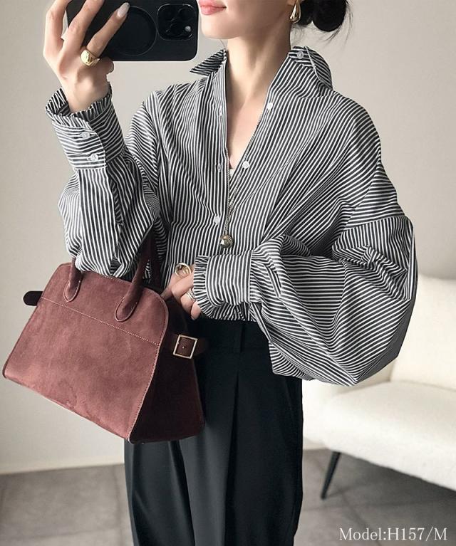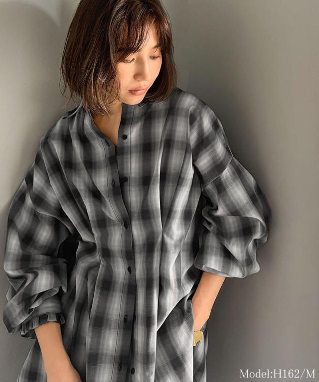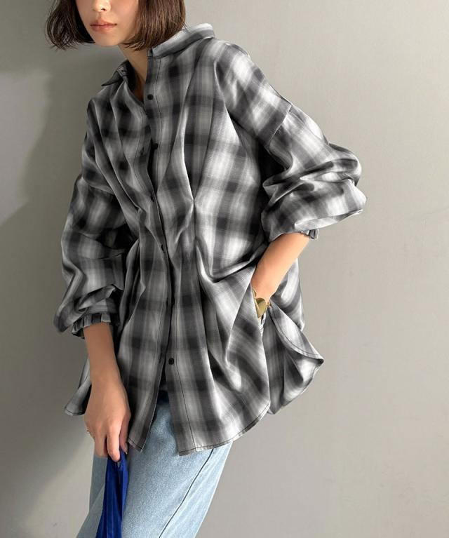 クラシカルエルフ秋新作 トップス ブラウス レディース 長袖シャツ ウエストタック 袖フリル 無地 チェック ストライプ 立体感 抜け感 羽織り ゆったり ビッグシルエット アウター ロングシーズン オンオフ 大きいサイズ 2025aw ce1110127