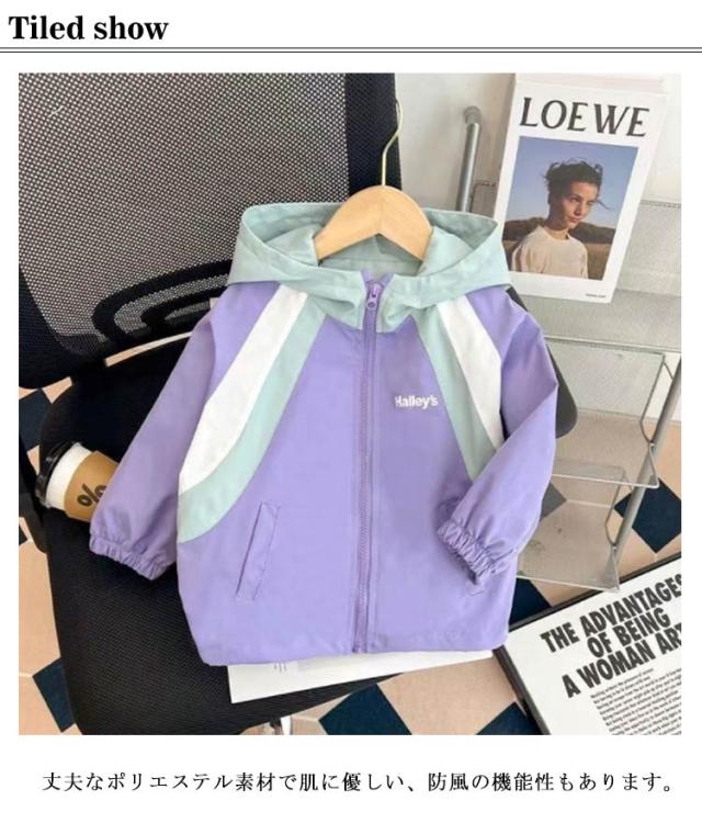 女の子 ジャケット 春秋 トップス 切り替え ジャンパー キッズ 子供服 スプリングコート ウィンドブレーカー マウンテンパーカー アウター 防風 長袖 ガールズ 秋物 配色 ジップアップ キッズ お洒落 ブルゾン フード付き カジュアル 送料無料 110 120 130 140 150