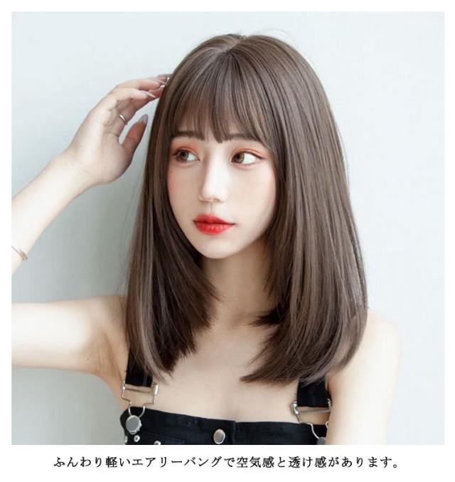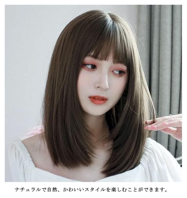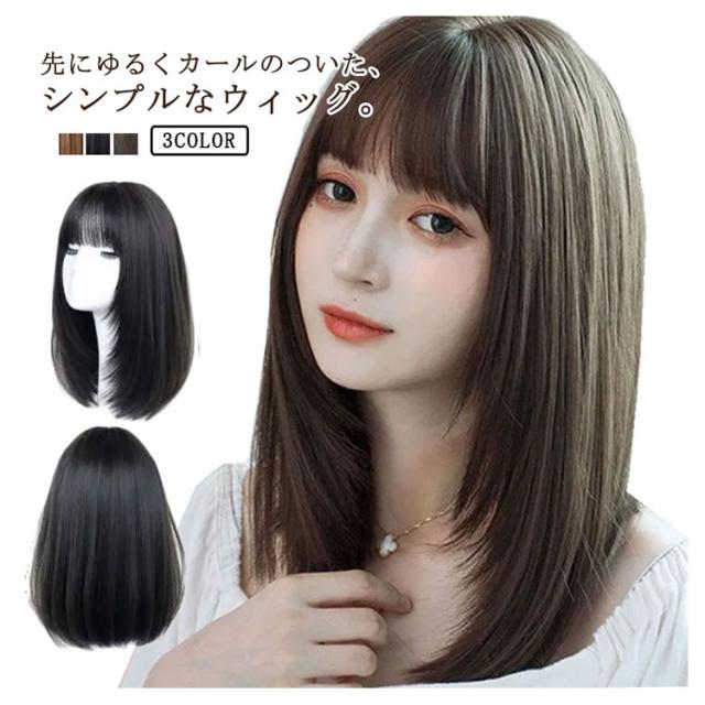 ウィッグ レディース フルウィッグ セミロング 自然 ミディアム カール レイヤー ストレート 小顔効果 かつら 黒髪 耳かけ 前髪 ハイトーンカラー うぃっぐ 女性 医療用 治療 抗がん剤 大人 コスプレ ネット付き 送料無料