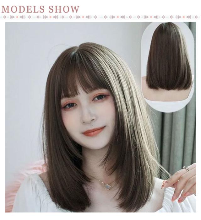 | 先にゆるくカールのついた、シンプルなウィッグ。 肩から鎖骨あたりの長さで扱いやすいストレートセミディ。 ふんわり軽いエアリーバングで空気感と透け感があります。 全体にレイヤーが入り、かぶり心地もとても軽いので1日かぶっても快適。 ナチュラルで自然、かわいいスタイルを楽しむことができます。 | |