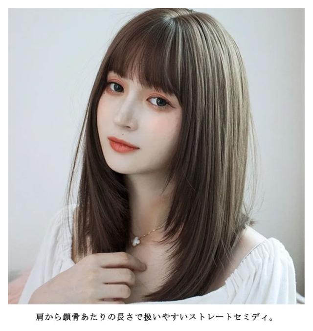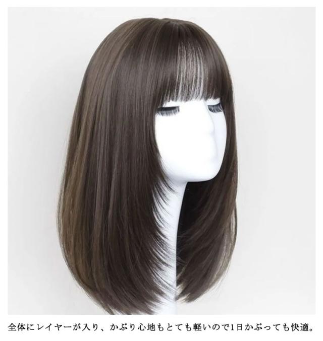 ウィッグ レディース フルウィッグ セミロング 自然 ミディアム カール レイヤー ストレート 小顔効果 かつら 黒髪 耳かけ 前髪 ハイトーンカラー うぃっぐ 女性 医療用 治療 抗がん剤 大人 コスプレ ネット付き