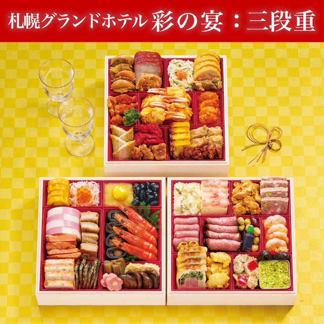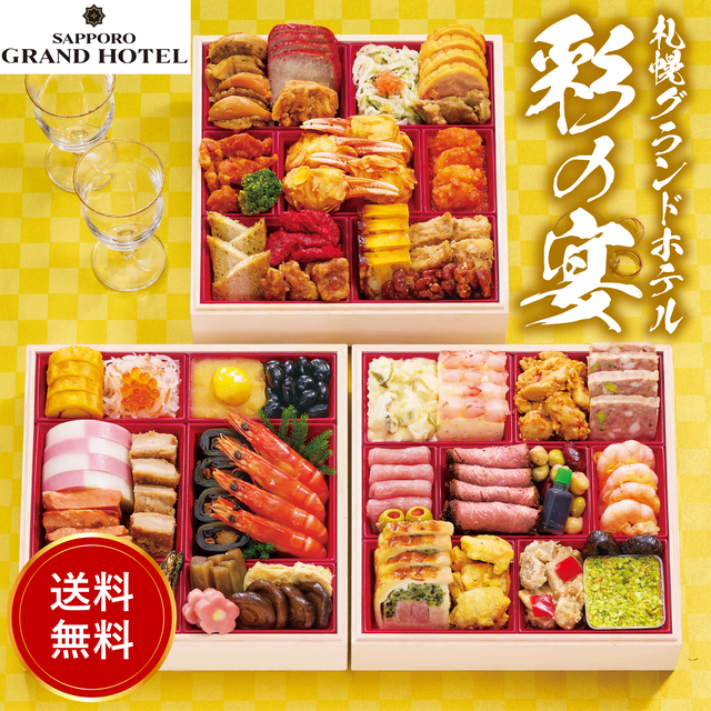 札幌グランドホテル「彩の宴」 木製7寸3段重 和洋中おせち 4〜5人前 【送料無料】