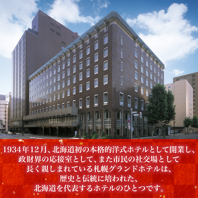 1934年12月、北海道初の本格的洋式ホテルとして開業し、政財界の応接室として、また市民の社交場として長く親しまれている札幌グランドホテルは、歴史と伝統に培われた、北海道を代表するホテルのひとつです。