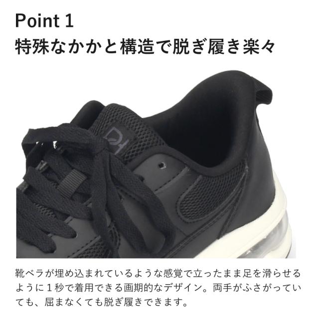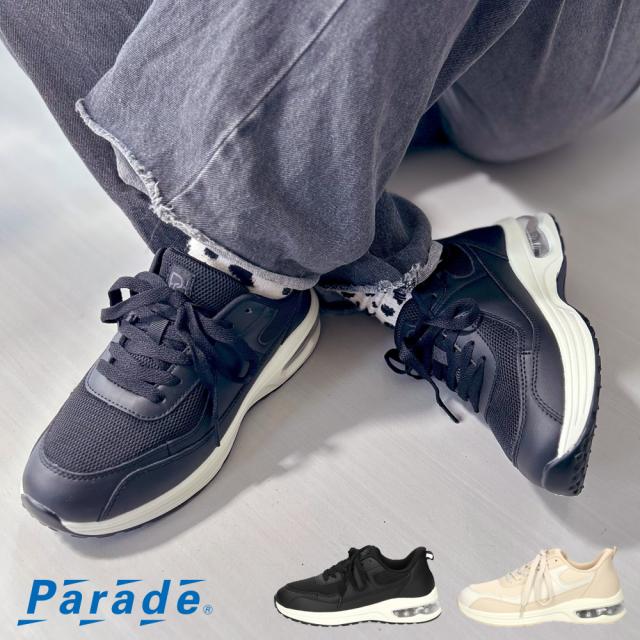 手を使わずに履ける靴 レディース スニーカー 厚底 疲れない 軽量 エアー クッション 歩きやすい 履きやすい かわいい シンプル カジュアル 黒 ブラック ベージュ Parade 51703