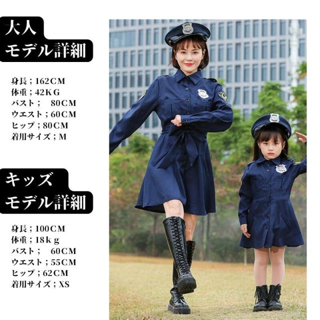 コスプレ ポリス キッズ衣装風警察コスチューム こすぷれ キッズ ワンピース 子供用 可愛い 大きサイズ 大人 レディース ハロウイン ママ 子供用 お揃い おそろい ペアシック 親子 ハロウィンコスプレ