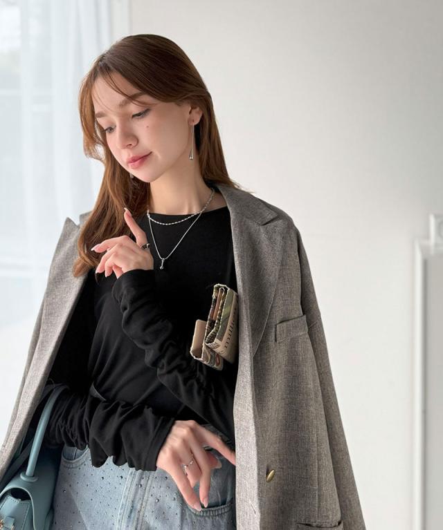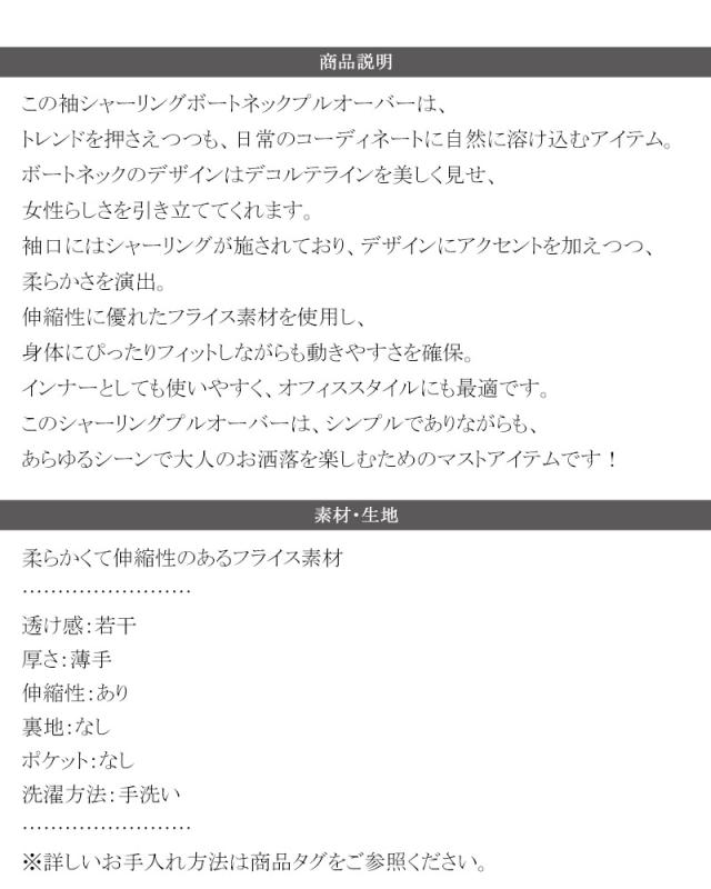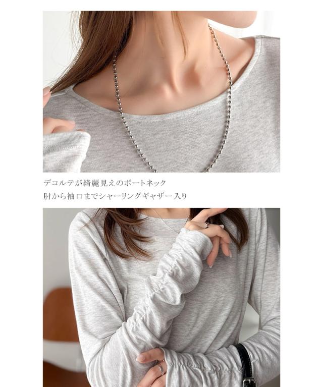 この袖シャーリングボートネックプルオーバーは、トレンドを押さえつつも、日常のコーディネートに自然に溶け込むアイテム。