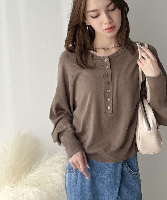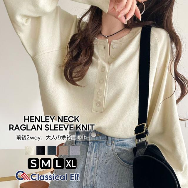 クラシカルエルフ秋新作 トップス ニット レディース ヘンリーネック ラグランスリーブ 前後2way カジュアル シンプル モード 大人の余裕 大人顔トップス 華奢見え 大人カジュアル ラクちん きれい見え 大きいサイズ 2025aw ce1260449