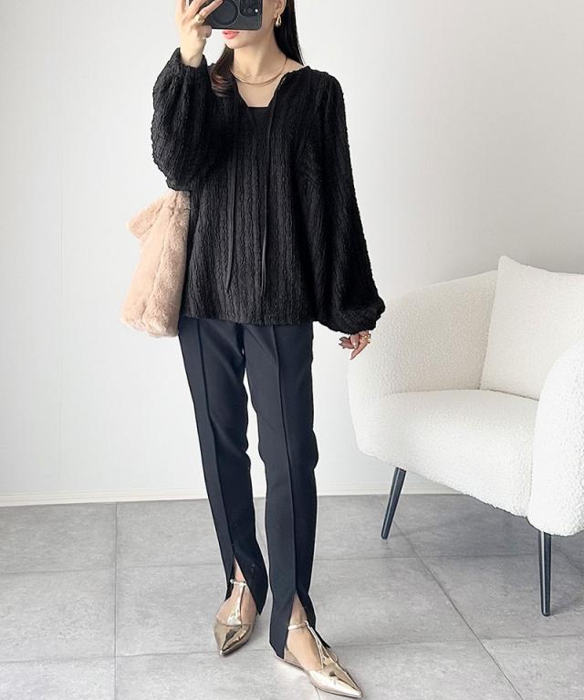 クラシカルエルフ秋新作 トップス ブラウス レディース チュニック 前後2way ジャガード 高見え 体型カバー 上品 高級感 優秀チュニック リボン フェミニン デイリー 休日スタイル ボリューム感 万能 大きいサイズ 2025aw ce1260492
