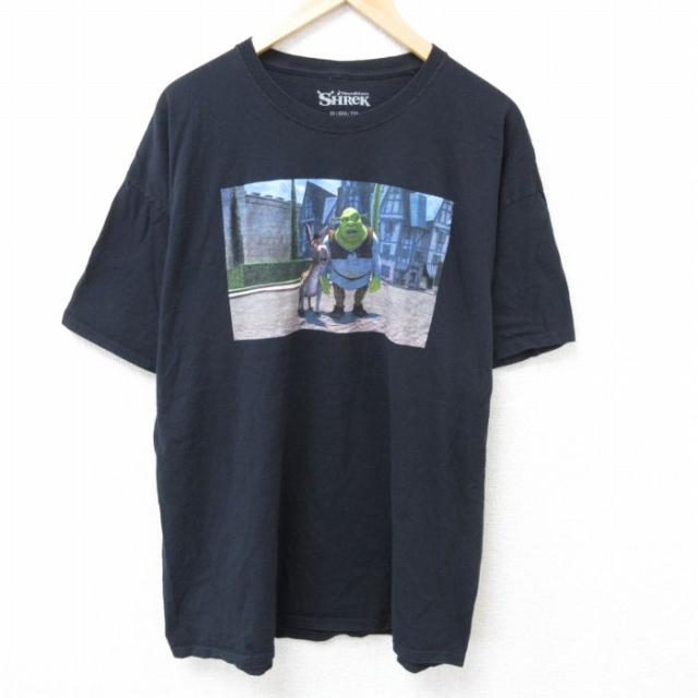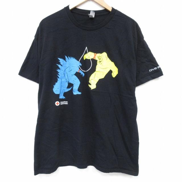 古着 半袖 Tシャツ メンズ 映画 ゴジラ キングコング 大きいサイズ コットン クルーネック 黒 ブラック XLサイズ 中古 中古 古着