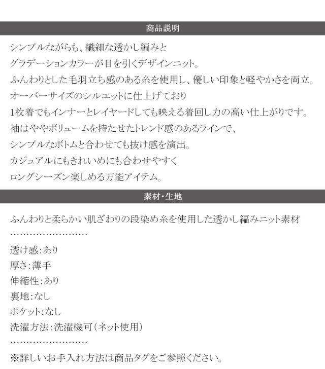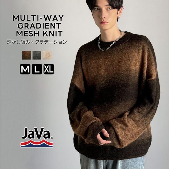 クラシカルエルフ秋新作 java ジャバコラボトップス ニット レディース グラデーション メッシュニット 長袖 透け感 天竺透かし編み 絶妙ニュアンス シアー感 レイヤード 男女兼用 ユニセックス メンズ ゆったり ボリューム 大きいサイズ 2025aw jm1260006