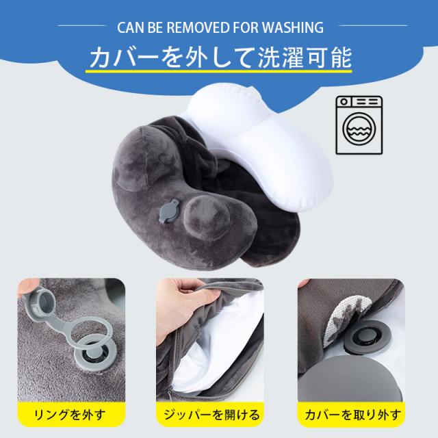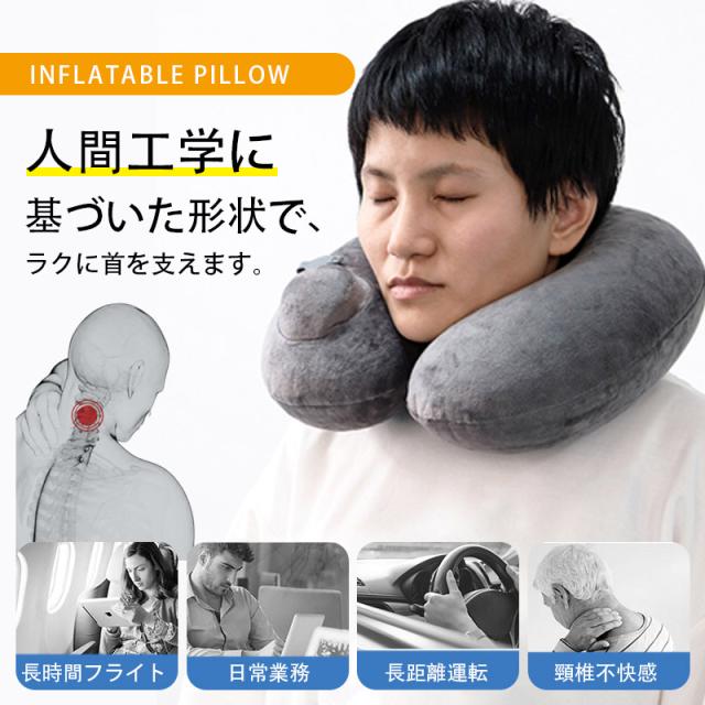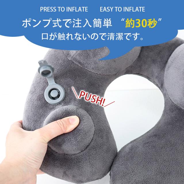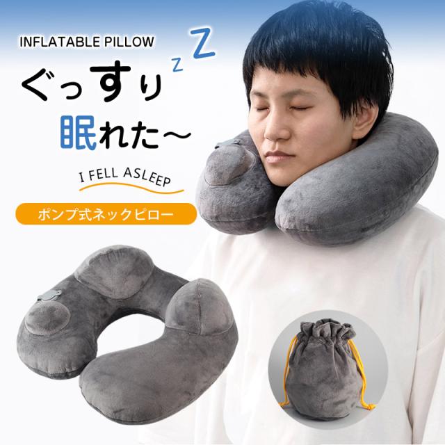 ネックピロー 飛行機 手動ポンプ 空気 旅行用品 トラベル 携帯 エアー コンパクト 軽量 洗える ぐっすり眠れた〜 旅行 ベロア 携帯枕 新幹線