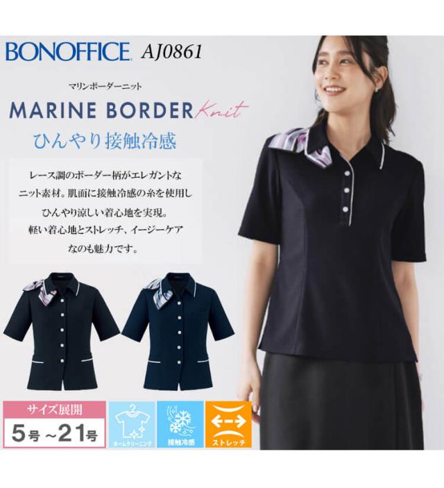 事務服 制服 BONOFFICE ボンオフィス オーバーブラウス AJ0861 S523シリーズ マリンボーダーニット ボンマックス サイズ17号・19号