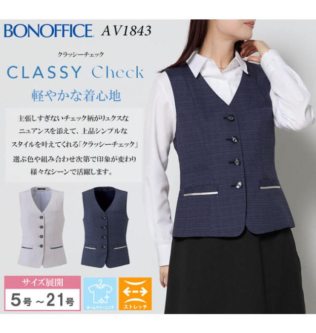 事務服 制服 BONOFFICE ボンオフィス ベスト AV1843 S522シリーズ クラッシーチェック ボンマックス サイズ5号〜15号