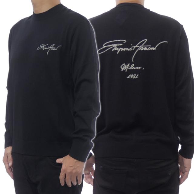 2025 秋冬新作! EMPORIO ARMANI エンポリオアルマーニ セーター メンズ クルーネック ニット EM002796 AF14199 ブラック