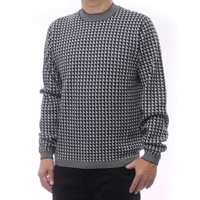2025 秋冬新作! EMPORIO ARMANI エンポリオアルマーニ セーター メンズ クルーネック ニット EM001989 AF14199 ブラック×ホワイト