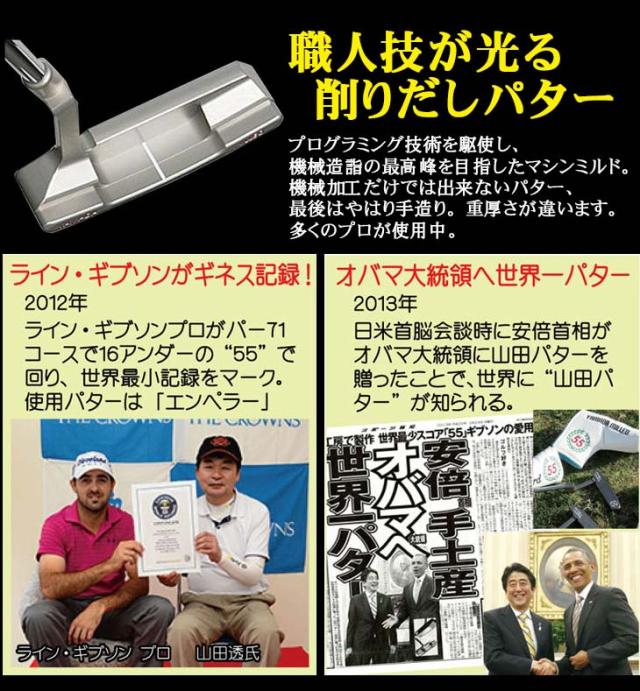 | 機械加工だけでは出来ないパターもあります。最後はやはり手造り。 重厚さが違います。多くのプロが購入して使用しています。 入れるためのパターとパッティングストローク。世界中のプロに支持されるヤマダのパターとパッティング技術。 パッティングを科学的に解明し全てのプレーヤーが行なえる簡単で確実な方法が世界中のあらゆるツアーで多くの優勝者を輩出しています。 ひずみの無いストロークとそのためのパター造り。 1986年以来独自の理論と製造技術で造られた製品は全てが逸品と賞されています。各々のプレーヤーに合うフィッティングも好評です。 | |