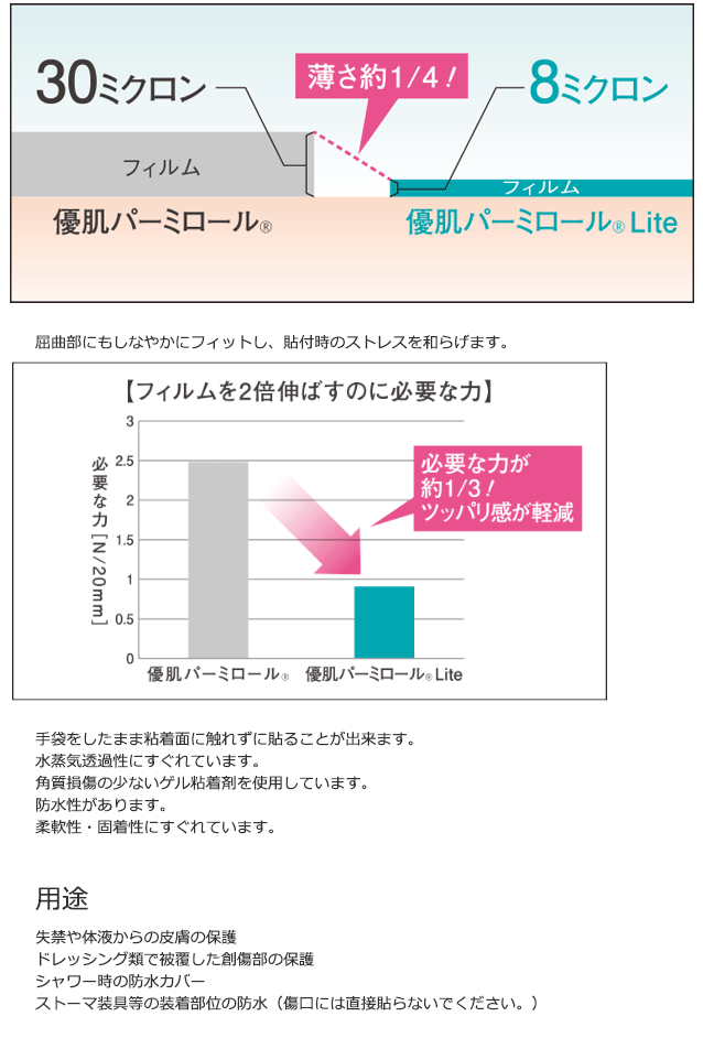 フィルムの薄さは「優肌パーミロール」の約1/4!