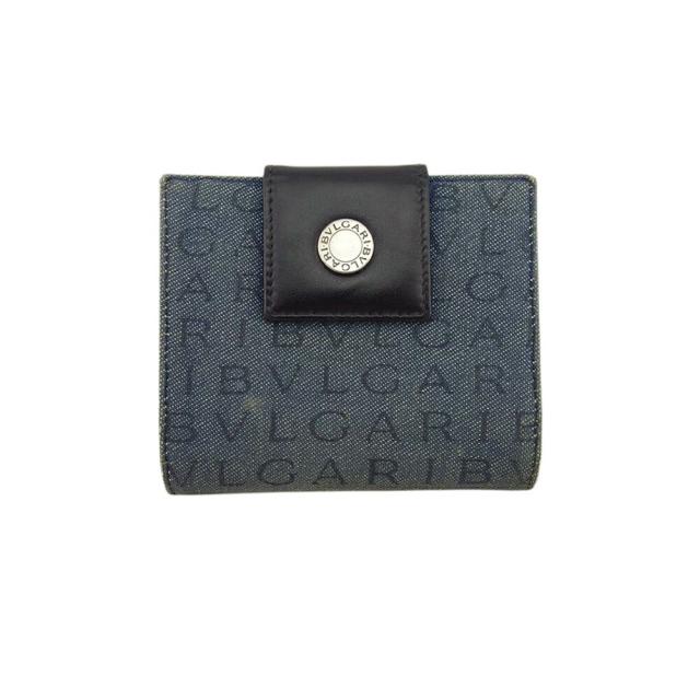 【新春セール★30%OFF】ブルガリ BVLGARI 二つ折り財布ロゴマニア ネイビー デニム ブラック レディース 中古