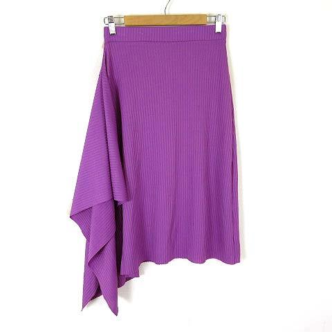 【中古】ザラ トラファルック ZARA Trafaluc スカート リブ ニット 変形 フリル ミモレ丈 S 紫 パープル レディース