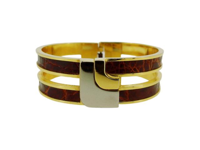 【ウィンターSALE★30%OFF】ロエベ LOEWE バングルLマーク クロコ調 ゴールド シルバー ブラウン レディース 中古