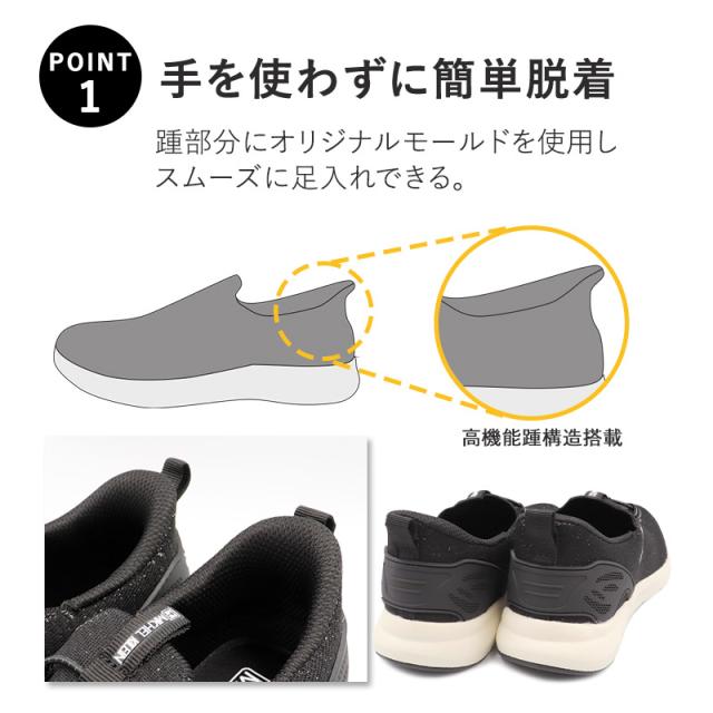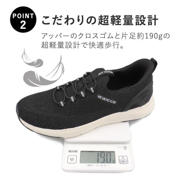 スニーカー レディース スリッポン MICHEL KLEIN MK2813 軽量 歩きやすい おしゃれ 黒 疲れない ベルト ウォーキング