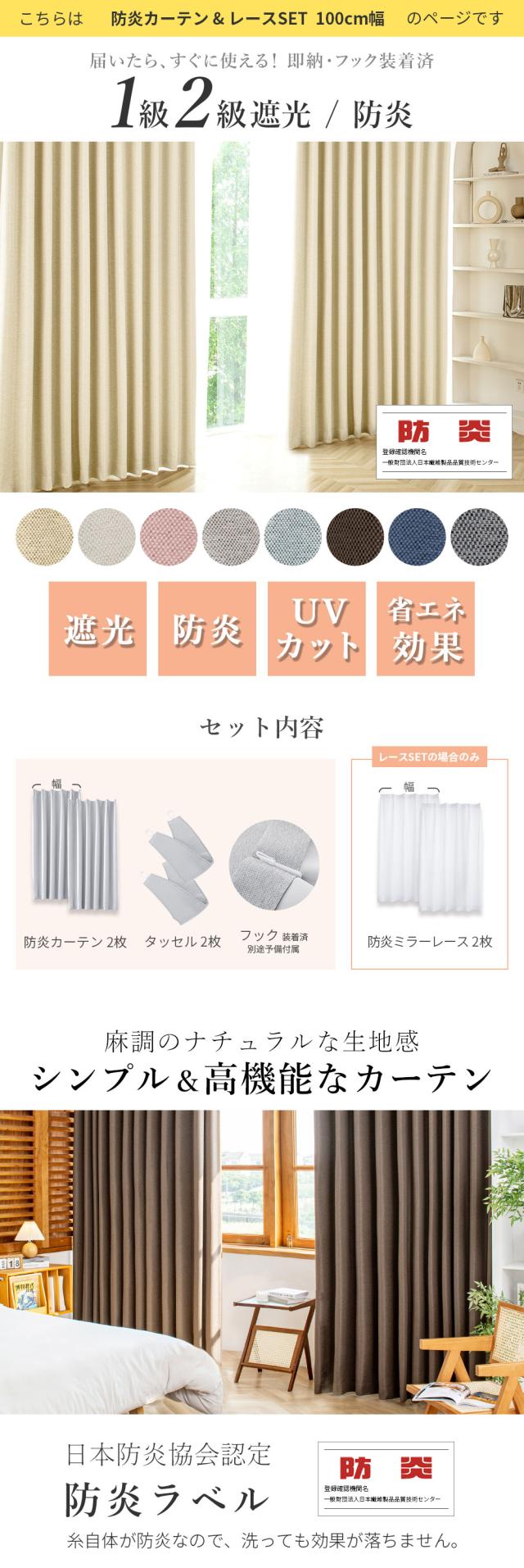カーテン 防炎 4枚セット 遮光 1級 防炎カーテン 幅100cm 4枚組 1級遮光 2級遮光 防火 難燃 断熱 遮熱 保温 UVカット 麻調 間仕切り 無地 AIFY アイフィー