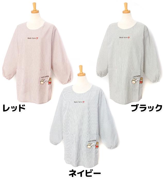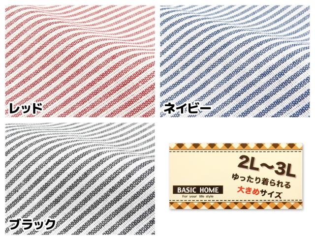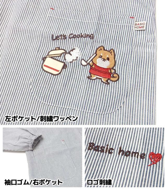 【送料無料】【大きいサイズ】婦人 レディース 割烹着 エプロン 後ろボタン&ひも留め ストライプ いぬ刺繍ワッペン ポケット付き 2L-3L sl-0636【メール便対応】