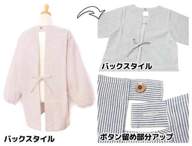 な後ろボタン&ひも留めタイプ。腕