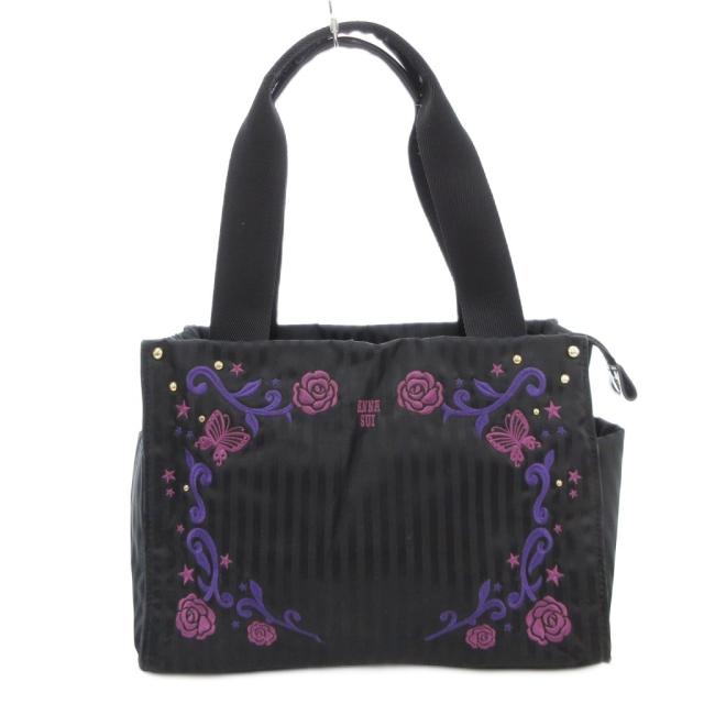 【中古】アナスイ ANNA SUI ハンドバッグ 刺繍 花柄 ストライプ 黒 ブラック /AE レディース