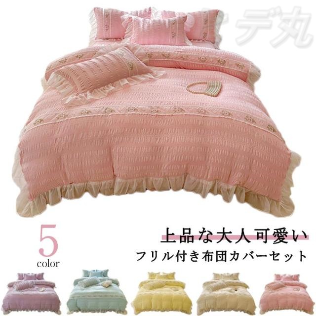 布団カバーセット 4点セット ダブル 掛ふとんカバー 掛け布団カバー 寝具カバーセット 掛け 敷き布団カバー ふとんカバー 姫系 フリル付き 布団カバー花柄 レース ベッドスカート シーツカバー シーツセット 寝具セット 洋式 北欧 おしゃれ