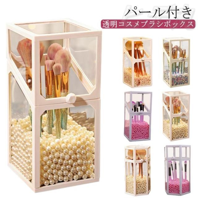 メイクブラシホルダー クリア メイクブラシ収納ボックス パール付 メイクブラシケース メイクブラシスタンド メイクブラシ 化粧ブラシホルダー ブラシスタンド メイクブラシ入れ メイクブラシ 収納 スタンド ぺんたて 筆立て 小物収納