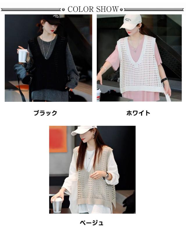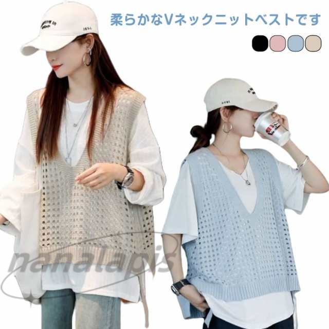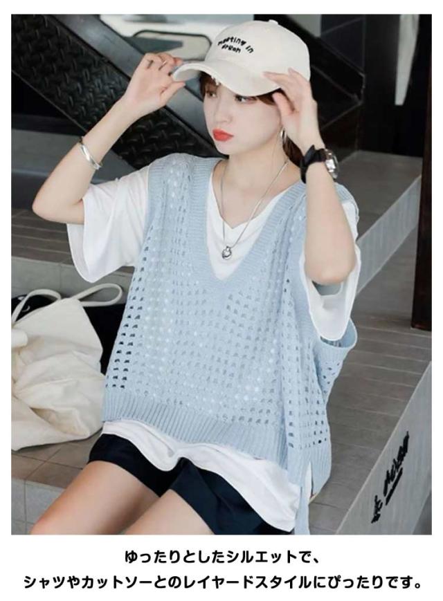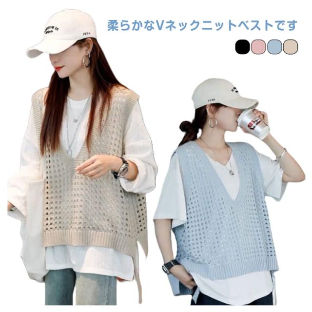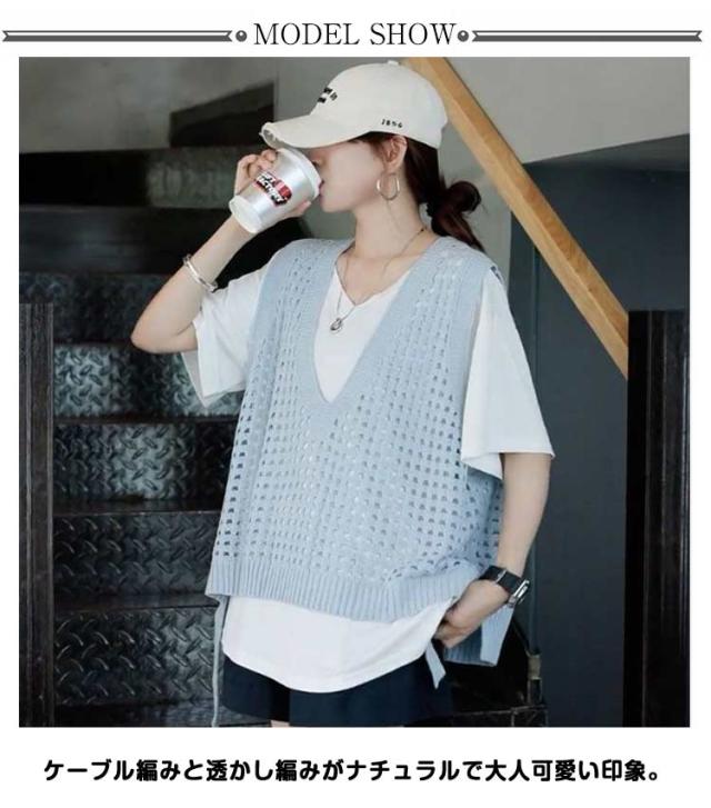 ベスト 透かし編み トップス ニットベスト レディース ベスト プルオーバー ベスト Vネック ニット サマー 春夏 ショート丈 サマーニット ジレ シンプル 無地 夏ベスト ノースリーブ 重ね着 カジュアル 大人可愛い