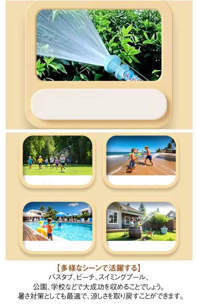 | 【花火のような水鉄砲 2個セット】 超強力な性能を備えており、水を花火のように勢いよく撃ち出します。夏の定番の水遊びに最適なおもちゃで、水ピストルとしての威力は子供から大人まで楽しめます。 【耐久性に優れた】 高品質の素材を使用して作られており、耐久性に優れています。水にさらされることが多い水遊び用のおもちゃですが、長期間にわたって繰り返し使用しても、破損や劣化することがありません。 【使い勝手抜群】全長約35cmの大きさで、持ちやすく使い勝手が抜群です。先を水の中に入れ、レバーを引いて水を得てから、レバーを押して水を噴霧します。 子供も大人も手に馴染みやすく、快適に水遊びを楽しむことができます。 【親子で楽しめる】 軽量でコンパクトで、触り心地が良いので、お子様が握りやすくなっています。 プールとビーチに行って、すぐに暑さを吹き飛ばしましょう! 【多様なシーンで活躍する】 バスタブ、ビーチ、スイミングプール、公園、学校などで大成功を収めることでしょう。 暑さ対策としても最適で、涼しさを取り戻すことができます。 | |