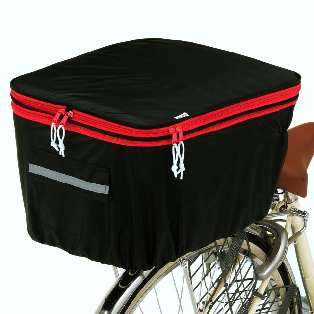 ◆商品名:サギサカ(SAGISAKA) 自転車用 カゴカバー 後カゴ用 2段式後カゴカバー ポケット付き 撥水 ブラック/レッド 34240